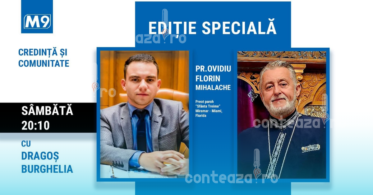 EMISIUNE. Sâmbătă, 27 iulie, ora 20:10 (ora României), postul de televiziune M9 TV difuzează în direct o ediție specială dedicată românilor din diaspora, cu titlul „Credință și Comunitate – Suflet Românesc în Miami”.