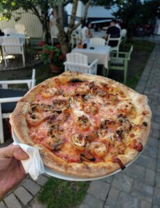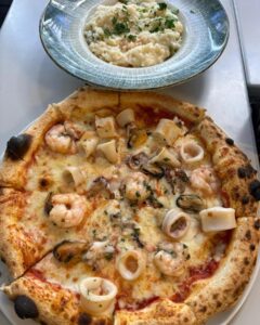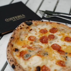 Dacă fructele de mare nu sunt prima ta iubire, meniul de pizza vine cu un argument solid. Pe lângă clasicele consacrate, Osteria del Dottore propune și variante proprii, personalizate, cu jambon, ricotta, parmezan sau fructe de mare, într-un echilibru care demonstrează maturitate culinară.