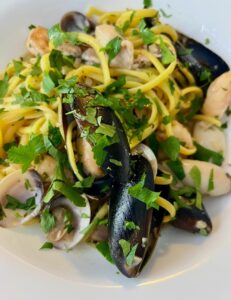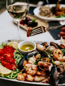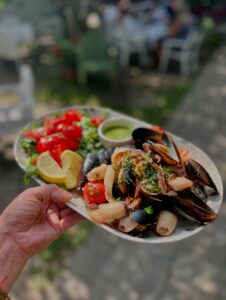 Meniul, o adevărată declarație de dragoste pentru bucătăria italienească și mediteraneană, te ia prin surprindere încă de la primele pagini. Antipasti/aperitive generoase, platouri de brânzeturi atent selecționate, bruschete cu roșii, hribi, anșoa sau somon, apoi intrarea triumfală a fructelor de mare. Creveți, caracatiță, midii, calamari, fie în sos de roșii cherry, fie la grătar, alături de o supă de pește care te face să visezi la un port din sudul Italiei. Totul acompaniat de o focaccia cu rozmarin care te lasă buimac și indecis.