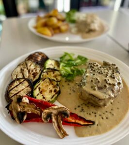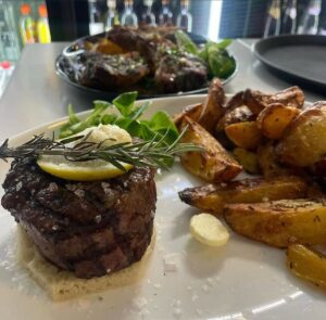 Carnea mulțumește inclusiv pe cel mai vânjos bărbat. Mușchiul de vită cu sos de piper verde, cotletul de berbecuț la grătar, antricotul de vită Uruguay, biftecul tartar sau coastele de vită la cuptor sunt doar câteva dintre vedetele meniului. Alături vin garnituri de legume la grătar sau sote, cartofi cu unt și usturoi, piure clasic și sosuri care completează un tablou gastronomic complet.