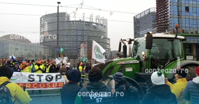 PROTEST. Strasbourg a devenit ieri și azi scena unui protest fără precedent al fermierilor europeni împotriva acordului de liber-schimb UE-Mercosur, perceput de agricultori drept o amenințare directă la adresa producției locale, standardelor de siguranță alimentară și normelor de mediu. Mobilizarea a implicat a peste 10.000 de fermieri și aproape 1.000 de tractoare, care au blocat accesul la Parlamentul European.