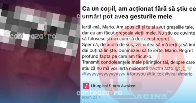 CONFESIUNI. Minorul în vârstă de 13 ani, implicat în crima care a zguduit o întreagă comunitatea din România, și-a recunoscut fapta și și-a exprimat disperarea prin mai multe mesaje publicate pe conturile sale de socializare, având acces la internet. După evenimentul tragic, adolescentul a făcut publice mai multe confesiuni tulburătoare, în care vorbește despre vinovăție, regret și nevoia de iertare.