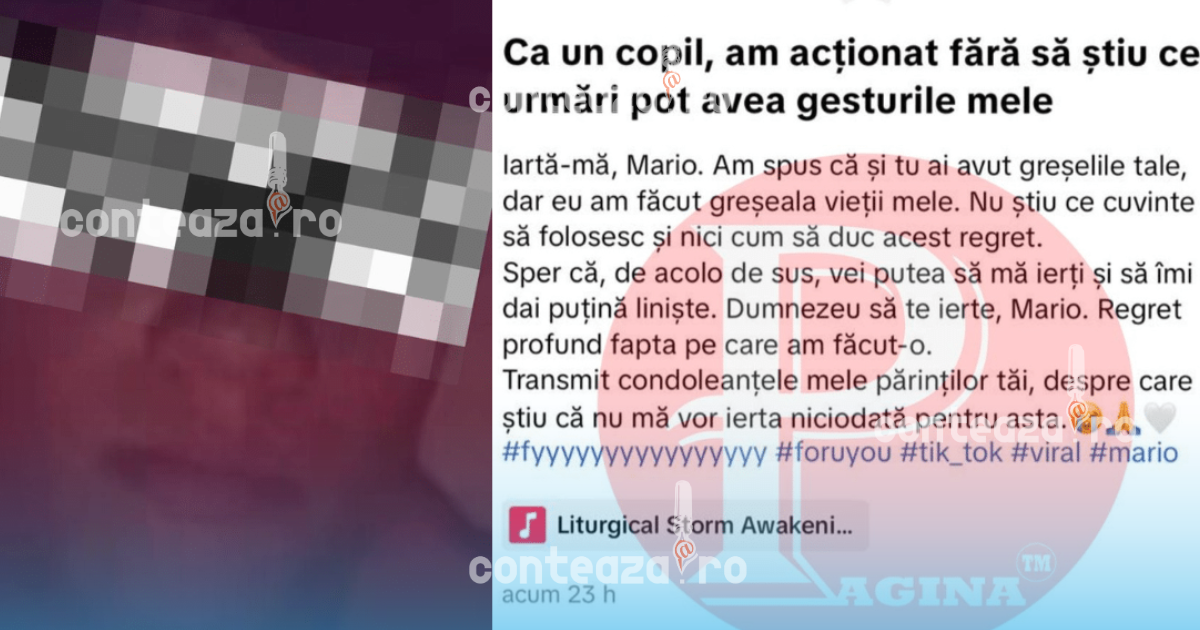 „Ca un copil, am acționat fără să știu ce urmări vor avea gesturile mele. Iartă-mă, Mario. Am spus că și tu ai avut greșelile tale, dar eu am făcut greșeala vieții mele. Nu știu ce cuvinte să folosesc și nici cum să duc acest regret. Sper că, de acolo de sus, vei putea să mă ierți și să îmi dai puțină liniște. Dumnezeu să te ierte, Mario. Regret profund fapta pe care am făcut-o. Transmit condoleanțele mele părinților, despre care știu că nu mă vor ierta niciodată pentru asta!”