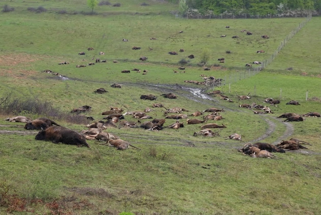 ZOOTEHNIC. Un tablou șocant a fost descoperit la ferma de bizoni din Recea Cristur, județul Cluj, unde autoritățile au identificat 214 animale moarte, inclusiv bizoni, bivoli, cerbi și căprioare, multe în stare avansată de descompunere. Ce trebuia să fie un proiect zootehnic finanțat și din fonduri europene s-a transformat, după cum afirmă prefectul Maria Forna, într-un veritabil „lagăr al animalelor sălbatice”.