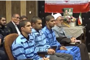 Conform informațiilor transmise de presa apropiată de Corpul Gărzilor Revoluționare Iraniene, cei trei au fost găsiți vinovați de uciderea a doi agenți de poliție în atacuri separate. În plus, au fost acuzați de „moharebeh”, o infracțiune definită ca „război împotriva lui Dumnezeu”, utilizată frecvent de autoritățile iraniene în dosarele împotriva protestatarilor.