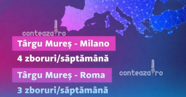 TRANSPORT. Bucurie pentru pasagerii care doresc să călătorească în Italia! Aeroportul Transilvania Târgu Mureș a anunțat ieri majorarea frecvenței zborurilor spre două dintre cele mai importante destinații italiene.